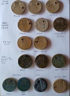 Some recent test tiles especially exploring some wood ash additions to MBST, TH 20 x 5 and MCMC2 base glazes